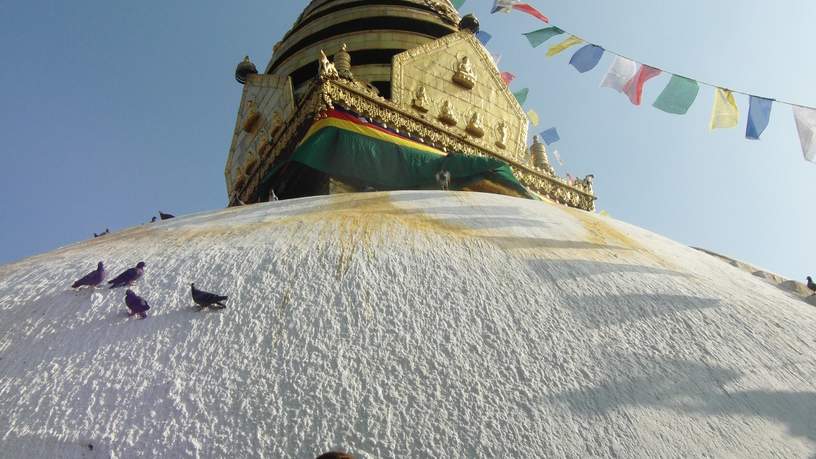 Ondanks de vele toeristen vond ik het bijzonder bij deze prachtige stupa. Little Tibet is de bijnaam van deze boeddhistische tempel die gebouwd is op de handelsroute naar Tibet. De Tibetaanse monniken lopen elke ochtend drie rondjes om de tempel, met de klok mee, voor goodluck. Mooi ritueel om te aanschouwen, bijvoorbeeld tijdens een ontbijtje in een van de vele rooftop restaurants rondom de stupa. Veel om te zien en in je op te nemen. Je mag een vlag ophangen voor geluk. Een monnik zegent de vlag voor je met spreuken en rijstkorrels. Vervolgens schrijf je iets op de vlag en hup, daar hangt jouw gelukwens te wapperen om door de wind verspreid te worden. Bijzonder!