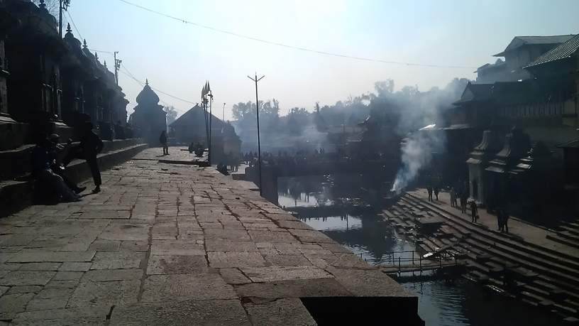 Lijkverbrandingen bij de hindoetempel Pashupatinath aan de rivier Bagmati