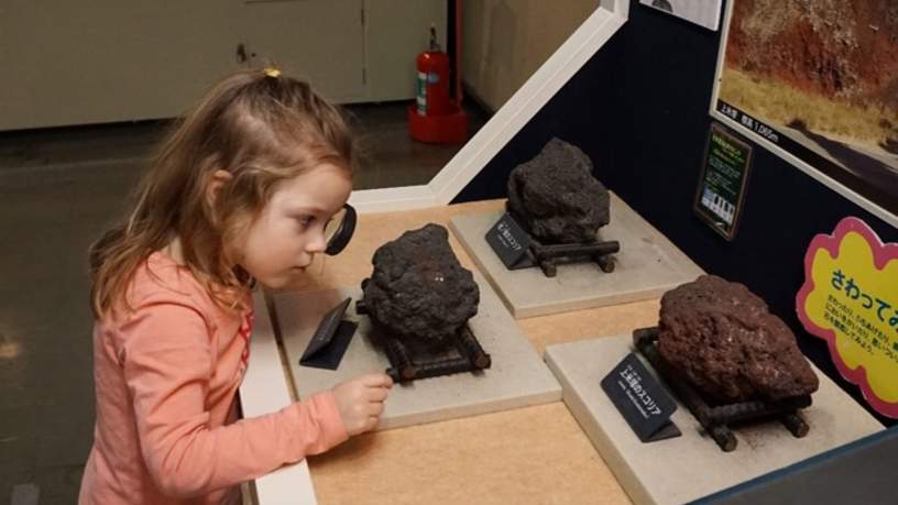 Mijn dochter zegt ook gelijk dat we nog terug moeten om de groene vulkaan te zien want die hebben we gemist. Ik begin te lachen, want de groene vulkaan hebben we inderdaad gemist omdat deze in de mist stond. Ze heeft het over de Komezuka vulkaan op Kyushu vlakbij Mt. Aso. We reden met de auto naar Mt. Aso en onderweg kun je, bij helder weer, vanaf de weg de Komezuka Vulkaan zien. Deze vulkaan is al lange tijd inactief en prachtig bedekt met een groene mosachtige laag. Schitterend zoals hij in het landschap ligt. Helaas hebben we hem gemist en reden we door naar Mt. Aso. Er is een interactief museum over het ontstaan van de vulkaan Mt. Aso. Hier kon mijn dochter op verschillende knopjes drukken waardoor er lampjes bij vogels oplichtten en het bijbehorende geluid werd weergegeven. Ze bekeek lavagesteente met een loep. Kortom ze vermaakte zich prima, veel beter dan ik had gedroomd! In andere musea of kastelen kunnen wij kleding aantrekken en ons voordoen als samoerai. Dat is eens wat anders dan op de foto in Volendamse kledij ;)