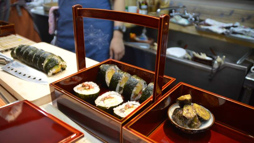 In de ochtend breng ik een bezoek aan een Sake brouwerij, tijdens mijn wandeling door het oude centrum. In een westers ogende woning betreed ik de keuken van Midori, waar ik hartelijk welkom word geheten. Samen bespreken we het lunchmenu en maken we een boodschappenlijst. Op de ochtendmarkt doen we inkopen voor een traditionele winter hotpot, Takayama Egoma veggies en een maki sushi roll. Ik draai gehaktballetjes voor in de hotpot, maal sesamzaad voor de dressing en vul mijn sushirol met ei en groenten. Rond het middaguur smul ik van mijn eigen gemaakte Japanse lunch.