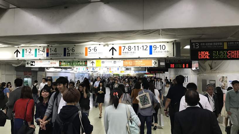 Op naar het moeilijkste gedeelte: het juiste spoor vinden. Zoals ik al zei, Shinjuku station is het drukste station van Tokyo. Per dag reizen er zo’n 3.6 miljoen mensen via dit station. Er zijn 30 perrons en er stoppen elf verschillende lijnen waaronder drie belangrijke lijnen van de stad; Yamanote line, Keio line en Shinjuku line. Deze zijn van een andere aanbieder, waarvan er hier vijf opereren. Ingewikkeld genoeg? Oh ja, het station heeft meer dan 200 in en uitgangen. Hai!