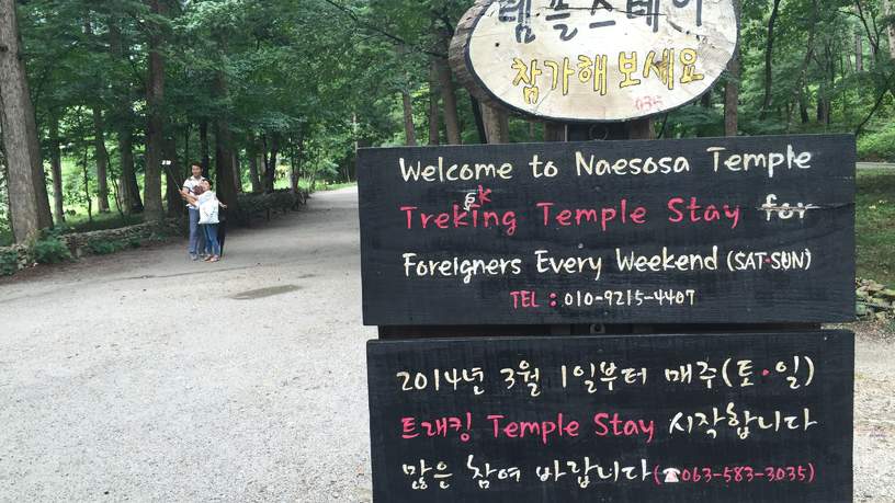 Voordat we op reis gingen hadden we ons wel een beetje ingelezen over Zuid-Korea. We waren vastbesloten om, naast alle moderne efficiëntie en gemak, toch ook iets van Koreaanse tradities en geschiedenis mee te krijgen. Zo ontstond het plan om te gaan overnachten in een boeddhistisch klooster. Veel Zuid-Koreanen doen dit ook: even een paar dagen er tussenuit om te mediteren, tot jezelf te komen, een goed gesprek te voeren met een boeddhistische monnik, mee te doen met een ceremonie, en te genieten van rust en natuur. Je vindt de boeddhistische kloosters verspreid over heel Zuid-Korea, vaak in de mooiste natuurparken, en zo'n 26 kloosters bieden een programma met één of meer overnachtingen, de zogenaamde 'temple stay'. En ze zijn er in alle maten, groot, klein, oud en minder oud. Wij besloten het te proberen in het Naesosa Klooster, een klein en vrij afgelegen klooster in het westen van Zuid-Korea, en bijna 1000 jaar oud. Mailtje gestuurd, en jawel, na enkele dagen antwoord dat we van harte welkom waren!
