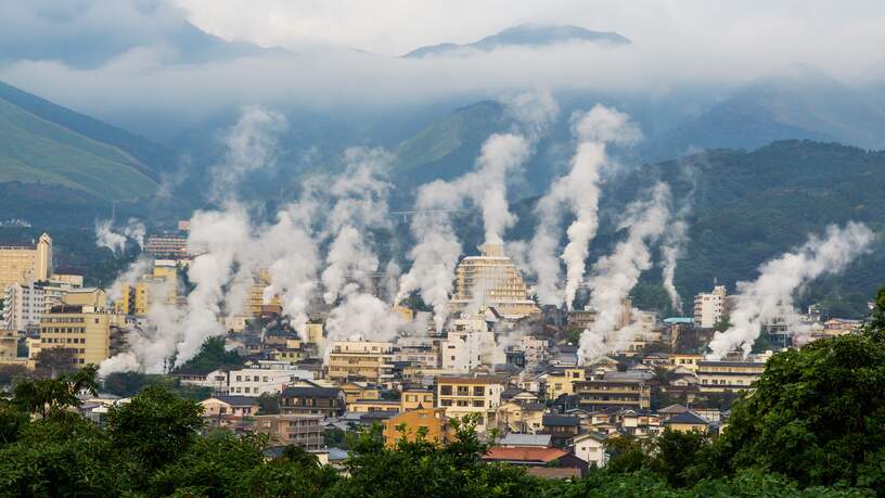 Van Takachiho naar Beppu is het ongeveer 105 km / 3,5 uur rijden. We reserveren in Beppu een kamer in een traditionele herberg. Je overnacht in Japanse stijl, op een futon (matrasje) dat je voor het slapen gaan uitrolt op een vloer van tatamimatten. Beppu is dé stad van de heetwaterbaden. Het is een populair Japans kuuroord met meer dan 3000 warmwaterbronnen en zwavelbaden waaraan geneeskrachtige eigenschappen worden toegeschreven.