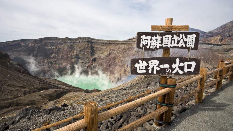Maak met de huurauto vanuit Kumamoto een dagtocht naar Aso, mits de omstandigheden dit toelaten. Aso is een klein dorp gelegen in het Nationaal Park Aso, in het midden van Kyushu. De vulkaan Aso heeft een gigantische krater. Voor wandelliefhebbers is Mt. Aso een must. Vanuit het dorpje Aso kun je Mt. Aso beklimmen en genieten van magnifieke vergezichten. Kumamoto heeft zelf ook nog twee schitterende monumenten die een bezoek de moeite waard zijn: het Kumamoto Kasteel en de prachtige tuin Suizenji Koen.